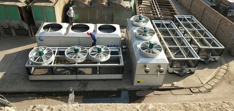 蒸發(fā)式冷凝器又叫蒸發(fā)冷、冷卻(凝)器,是由利用盤管外的噴淋水部分蒸發(fā)時吸收盤管內(nèi)高溫工質(zhì)的熱量而使管內(nèi)的工質(zhì)逐漸被冷卻的一種設(shè)備。